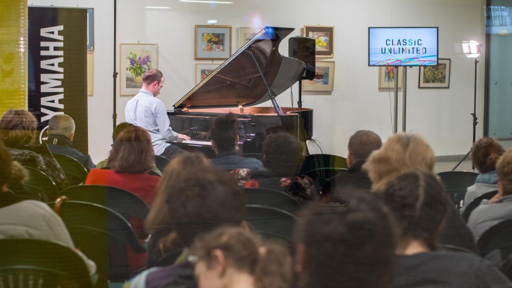 Pianistul Bogdan Vaida interpretează piese de Brahms, Ciprian Pop, Rachmaninov și Schubert.